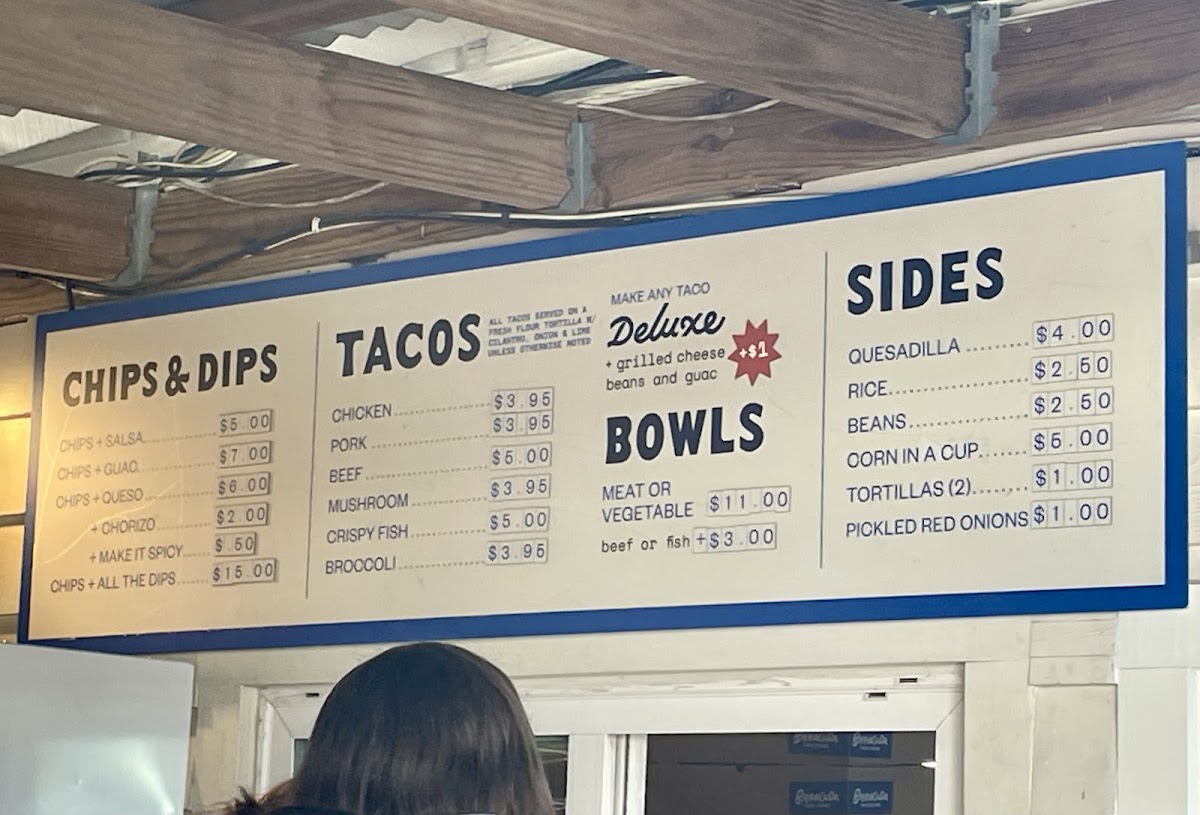 Beyond tacos, the GF bowls offer a hearty, colorful assembly of rice, beans, cotija cheese, guacamole, pickles, and shredded cabbage—perfect for those seeking a filling yet fresh meal. The special Chicken Mole Taco, with its rich mole poblano sauce, stands out as a must-try. The menu’s balance of spice, texture, and aromatic complexity makes each bite memorable.
